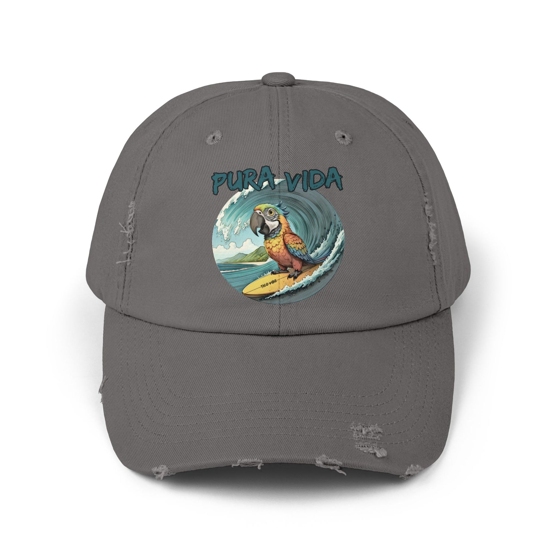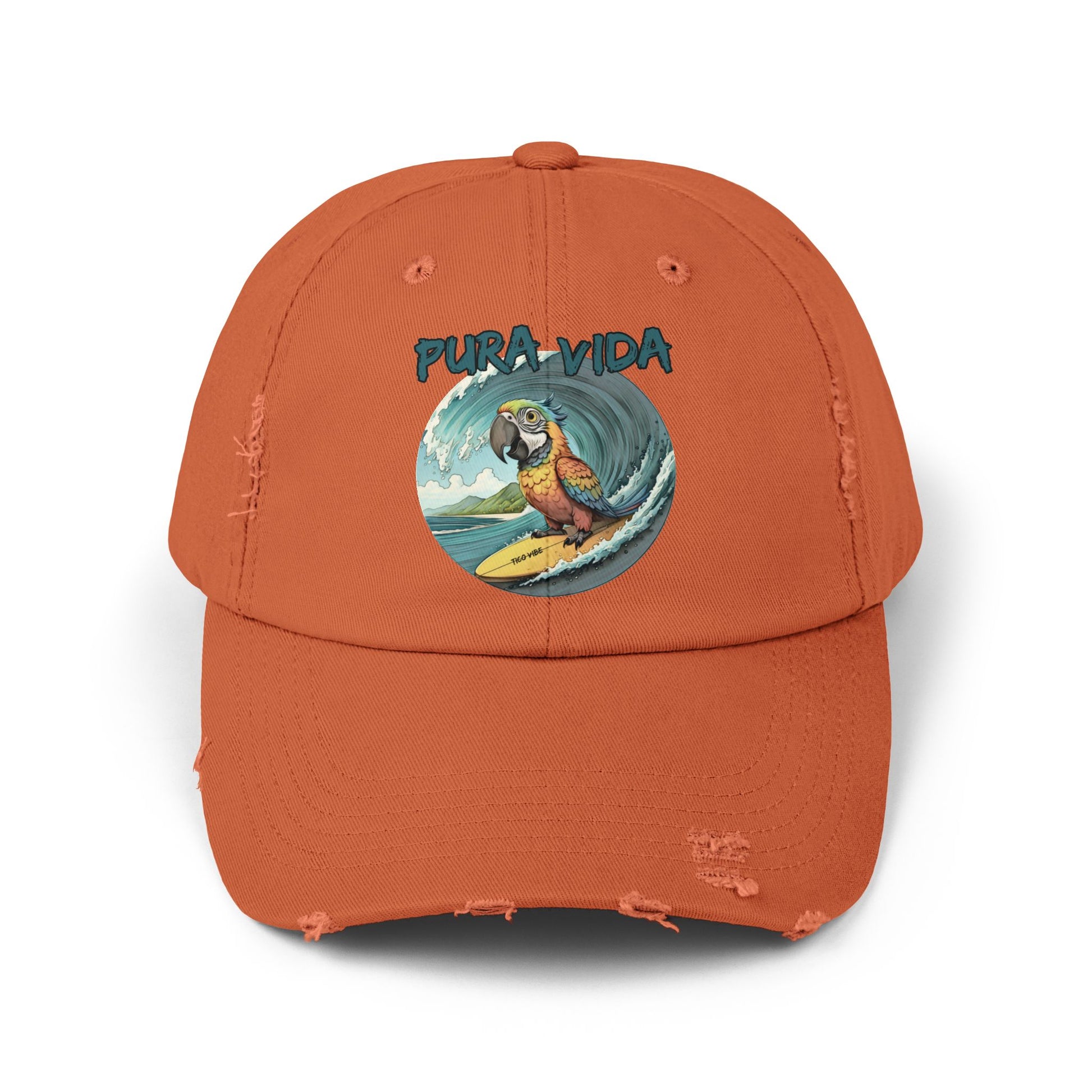 Surfing Macaw Distressed Unisex Cap